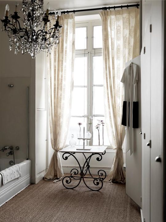 Look how soft and feminine this Pastry/Butcher Table becomes when used with the right fabrics and flowing window treatments.