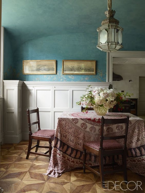 Old world interiors are my cup of tea so of course I love this predominately aqua room with muted warm colors added in. A room like this never really goes out of style!