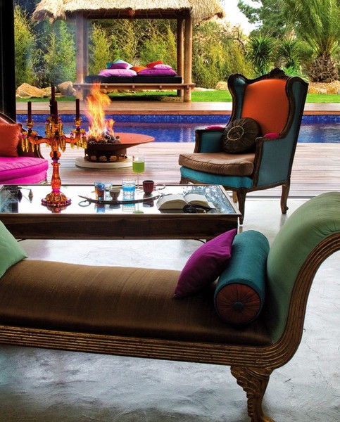 Ombre (pronounced ahm-BRAY) or sometimes called "gradient", is a new interior trend which is based on a color change from dark to light tones or from one shade to another and is being used in a variety of ways in interior design. Ombre style can be found everywhere and on everything, from fashion to home decor and even walls.This new style is going strong as it seems to have alot of fans. If you are looking for something to accent a Bohemian style interior, this is your look. For example, fading from a soft ballerina pink into a medium rose can be a great addition to your bathroom, or a light malted milk shade into a mocha brown in a living or bed room. Just think of multi-shade paint swatches....they offer a great example of how to transition colors. Also keep in mind the tie dyed technique of the 60's only with variations of one color. The best ombre treatment produces a watercolor like effect. Gradient furniture and decorations can be beautifully displayed in modern and traditional houses as well due to their versatility and visual appeal. The technique might be a bit different as you will see in the pictures but the effect is the same.