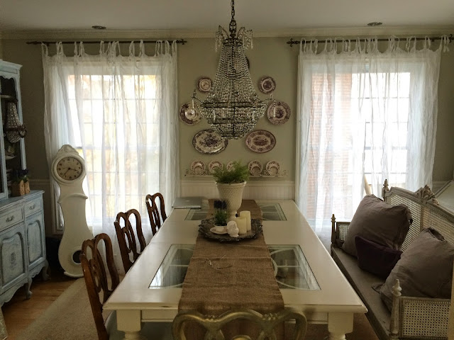 French Provincial white cane furniture is perfect for the chippy, farmhouse look. It's elegance looks right at home with a highly distressed piece like this farm table.