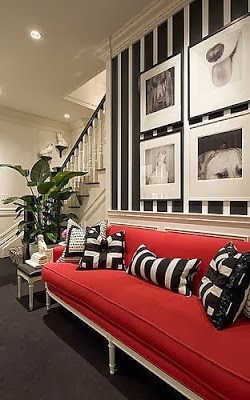 One of the hottest color trends for home interiors at present is one that really knows how to work a room. It's fiery, it's passionate, it's aggressive.....it's RED. I have wanted to do this blog for a few months but wanted to distance it from Christmas so red will be given it's due and not be pushed aside like the tinsel, ornaments, and poinsettias.This blog post is especially geared towards red furniture and how a room will come alive with just a small infusion of it by way of furniture pops.