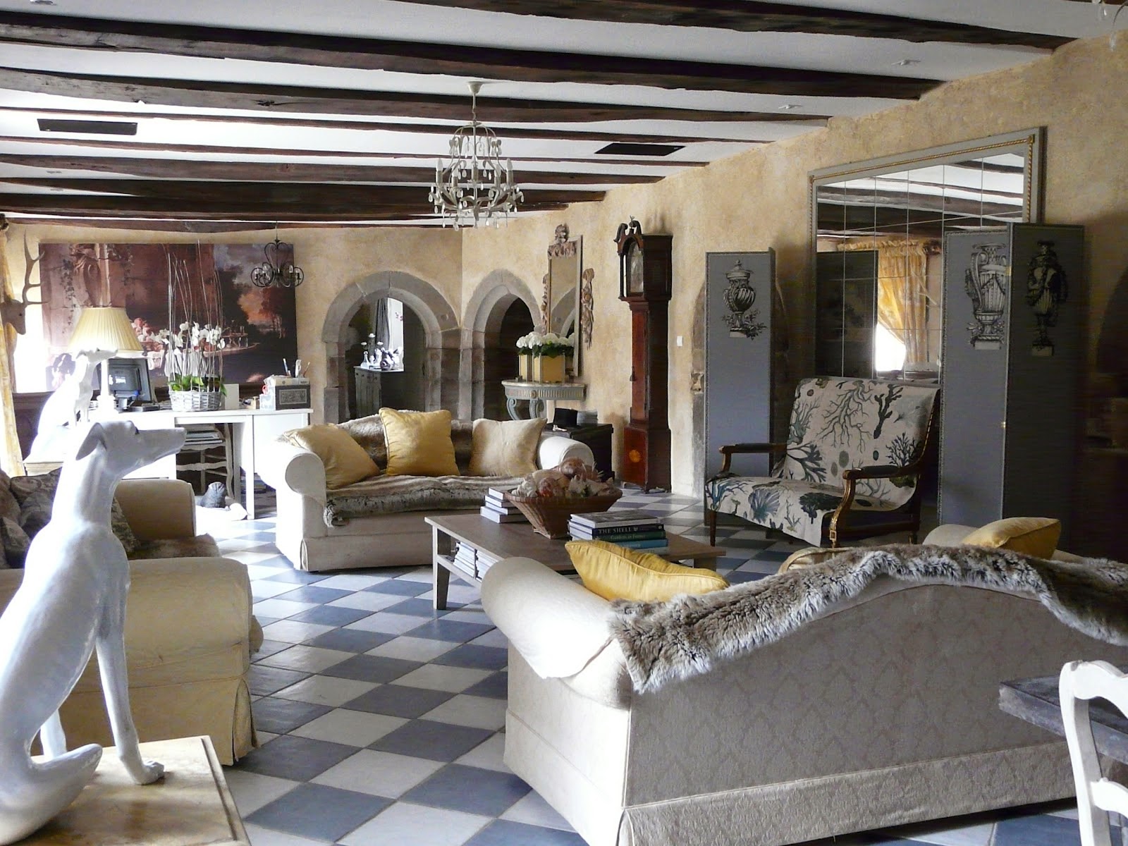 Chinoiserie was a favored design element during the Rococo period. You now see rooms that still incorporate Chinoiserie elements with French furnishings like these chairs and the Louis XV mantle. However, today all is wonderfully mixed with contemporary furniture and art.