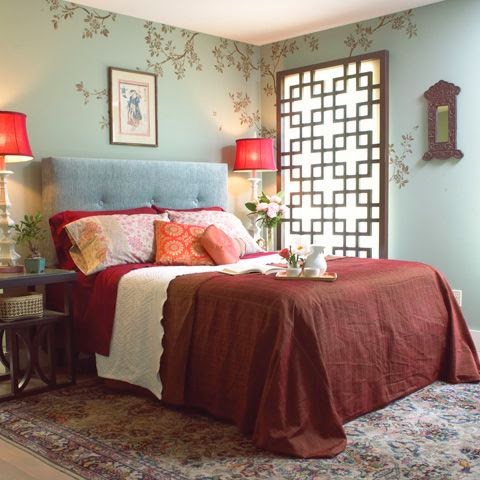 You can see the painting better in this image. The old red painted chest was a yard sale find.