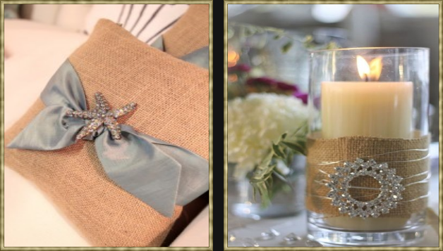 Bling is fabulous with burlap. The contrast is so fun and interesting.