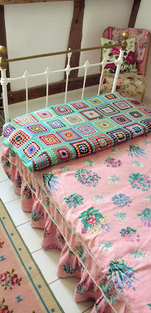 I particularly like the solid cream afghan.....for a French Provence Style interior.