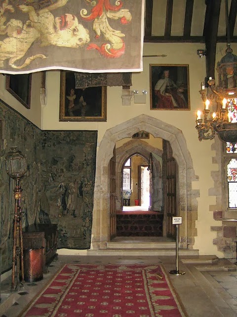 A typical Tudor hall. Notice the rustic style of the chandelier.