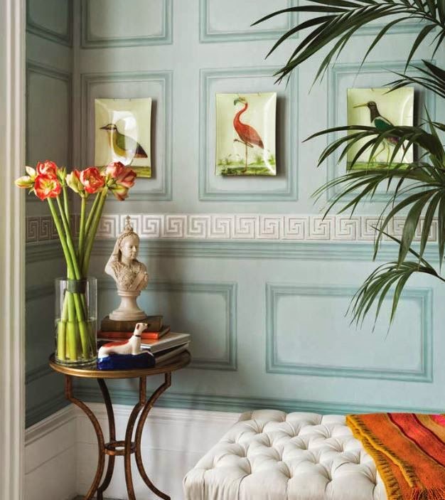 Malachite has always been a sign of wealth and status. Russia’s Romanov family was the first to use Malachite in interior decoration. The Winter Palace in Russia even has an entire room called the Malachite Room. Since the "real thing" isn't always affordable, today many decorators are using faux malachite in their clients homes to give them the look of elegance and sophistication that malachite can instantly bring to a room. At the end of the post are some links to tutorials that can show you how to dress up your own home with this technique.