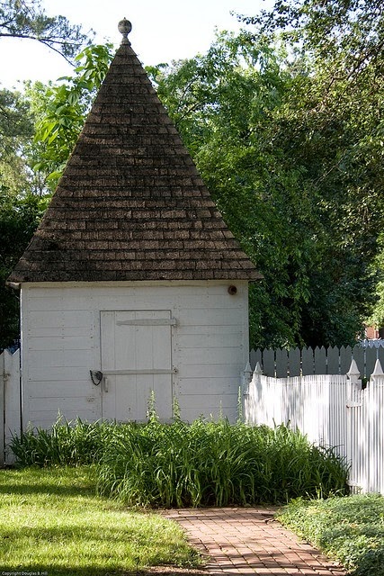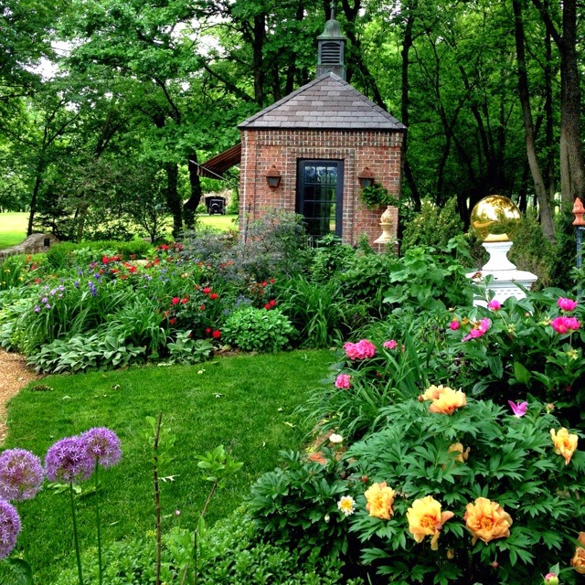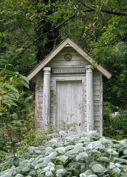 I love the English style garden sheds that are nestled among the vines and flowers. They are at their best when they are actually part of the landscape.