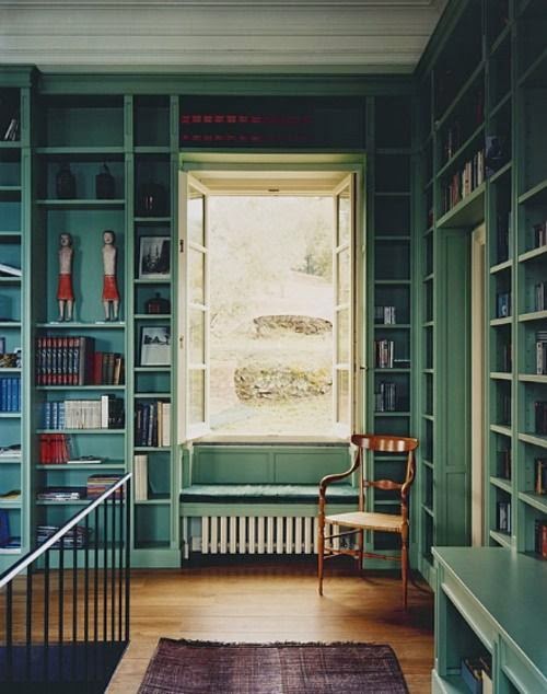 While this room may not be my cup of tea, I do like the use of old shutters as radiator covers. (Lose the pulls and use less noticeable hinges). Imagine distressed shutters in a French interior. This would be a great DIY project.