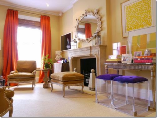 ..........or create a wall of etageres for a truely unique look. I love the like artwork above each etagere and the pops of color. Make sure your displays are interesting and well thought out.....not just clutter.