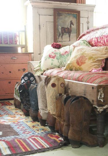 Today's "cowgirl" bedroom has more of a vintage flavor. This one is done up in shades of pink. Just don't get frilly or too girly.