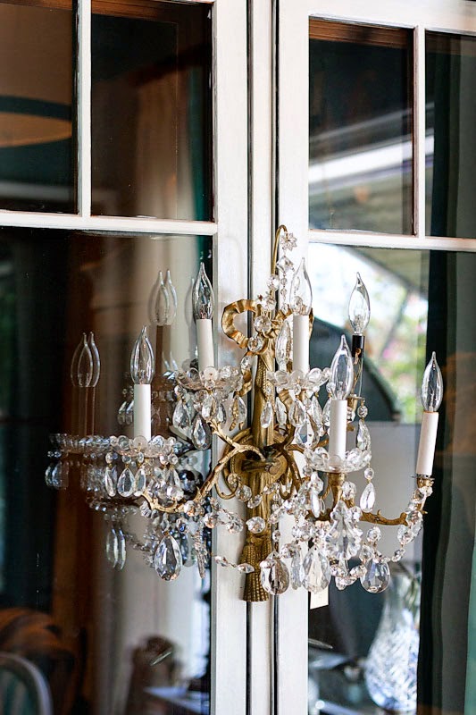 Crystal sconces and chandeliers are also perfection for the French or Swedish style interior. Don't be afraid to use crystal alongside rustic antiques. The two just somehow seem to go together.